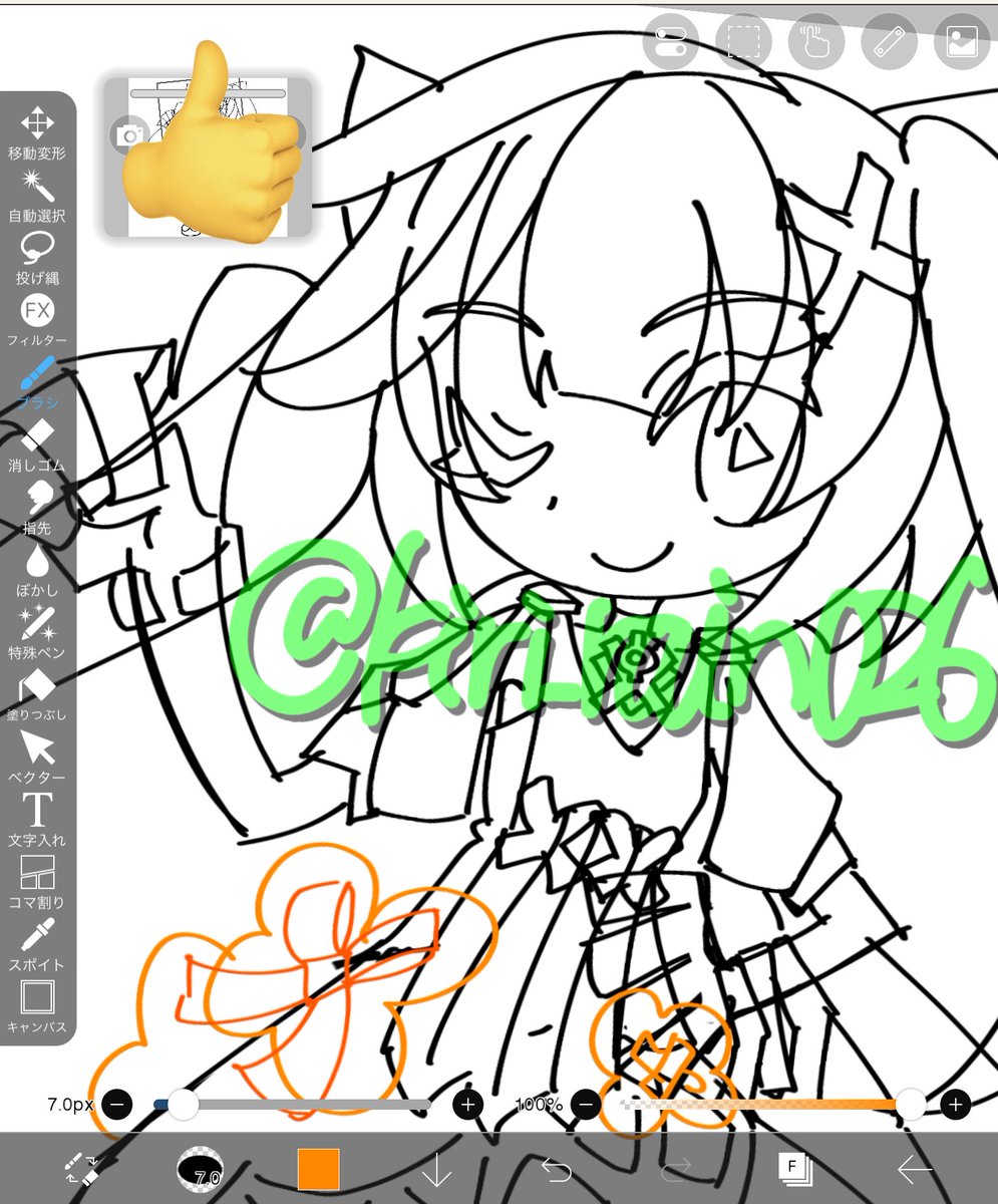 アイコン用にキィニチさん描いてるところ