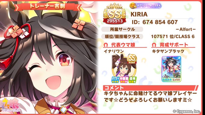 モチベ戻ってきたのでウマ娘のフレンド募集します!キタサン好きのトレーナーやってます!