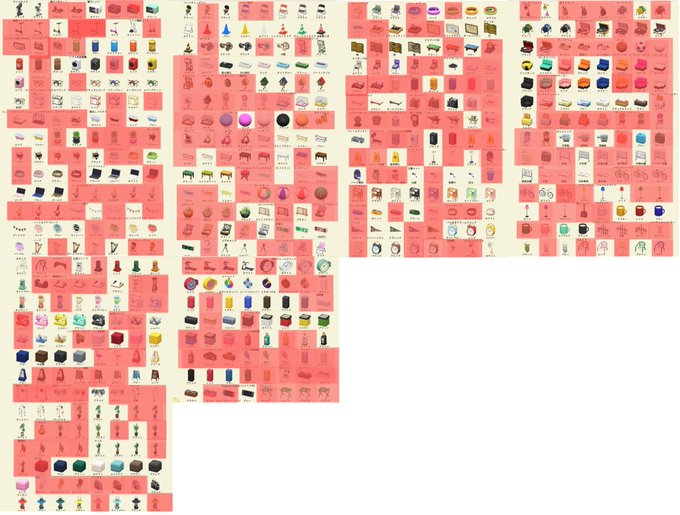 家具リスト。登録済みに着色