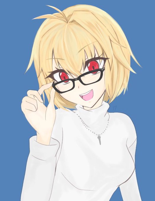 メルブラ特典のメガネアルクが可愛すぎたので前のイラストのver違いを。 お顔が気に入っていたのでそれ以外を修正してみた。メガネ描くのとても難しい。