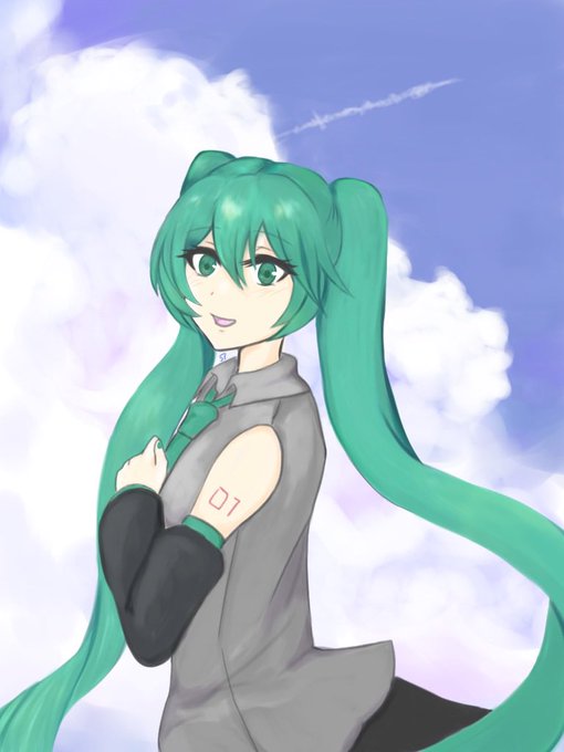 無性に雲とデフォルメが描きたくなったので描いてみた。また塗り方忘れてる😇 #初音ミク