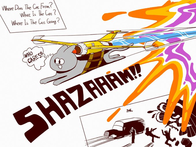 久しぶりに良い絵が描けたと思う! 意味もなく爆速で飛行する猫! シャッザーーーーム‼︎ ジェットパックのデザイン上手くできた