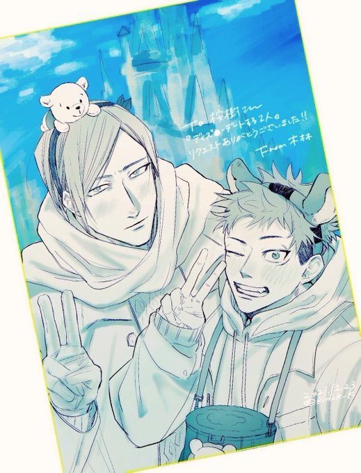 『ででにーデートするふたり』 勝手ながら呪専先輩×後輩の7️⃣🐯にさせていただきました☺️木林はもう数年もででにに行けてないのでふたりに是非満喫して貰いたいです❤️※ふたりがつけてるものは全部ぐぐる検索参考です リクエストありがとうございました〜!