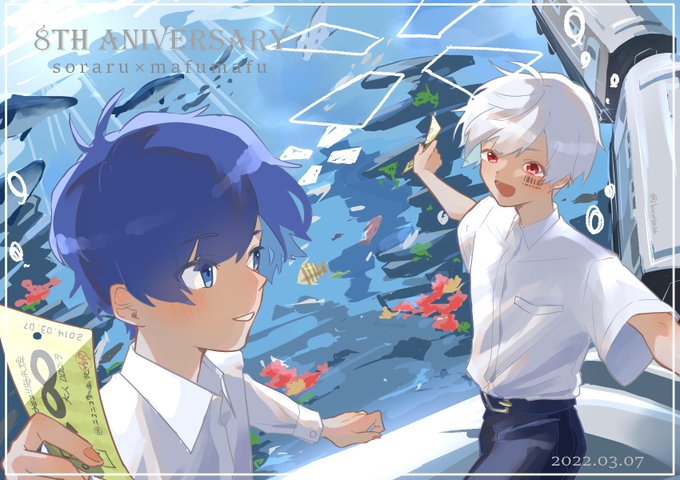 8周年おめでとうございます!!! お二人の作る音楽、世界観が大好きです!これからも応援しています🙏✨✨ #そらまふ8周年 #まふあーと #そらるの絵