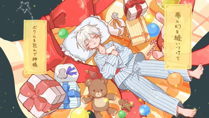 【お仕事】 ご依頼でクリスマスプレゼント用のイラストを描かせていただきました🎁🌟 OCたちについて詳しくお聞きし、2人のストーリーを一枚絵で表現しています ぬいぐるみたちのデザインもさせていただきました🧸💐