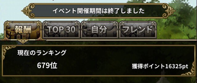 ランキングイベント終了ε-(´∀`; )