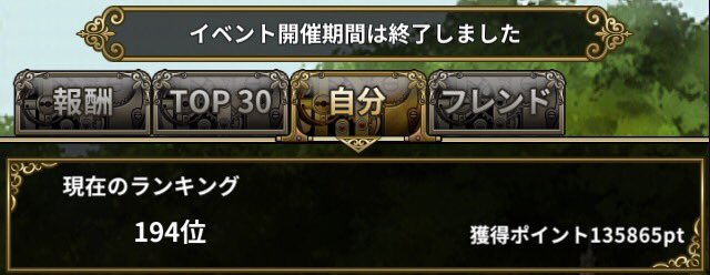 こちらのランキングイベント今日午後終わりました( ´△`)