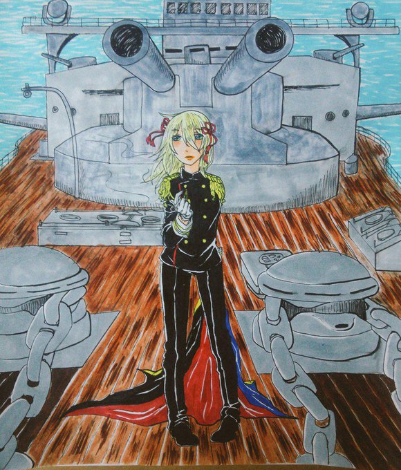 三笠 この間描いたやつ以外は死ぬほど古い絵しかない()色々あって現在は血の気の多い姉御系ロリです。TOGOさんとは艦の上だけでそういう関係だったとかなんとか。最近はごえーかん構うのが楽しいそうです。