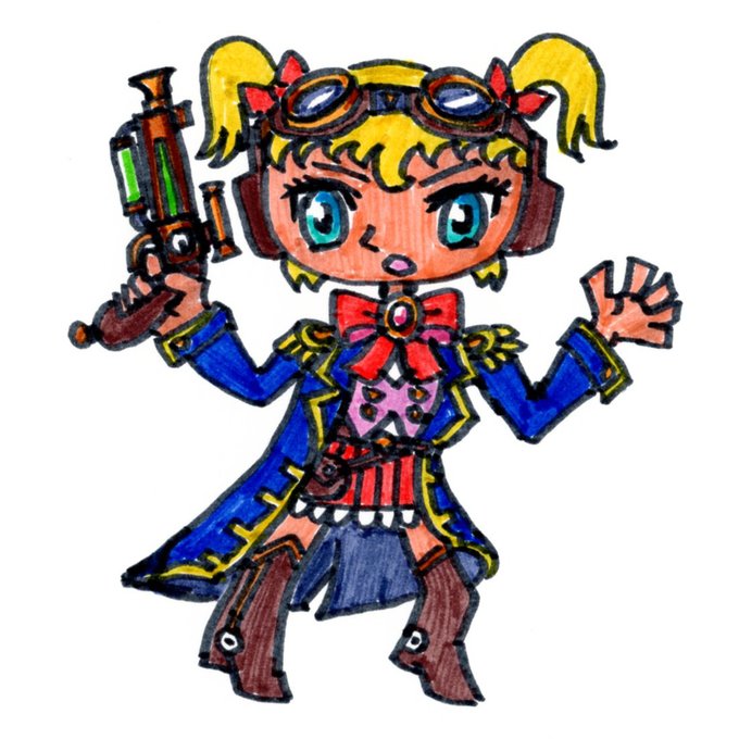 お絵かき / スチームパンク・アドベンチャーガール……。 Desegnajhoj: Vaporpunkaj Aventuristinoj... #スチームパンク #steampunk
