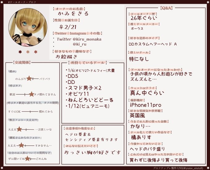 #ドールオーナープロフ