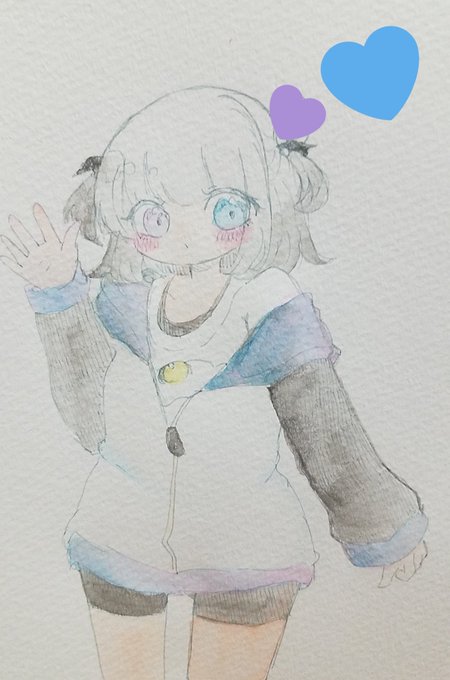 水彩使いたくなったから久々にわたくしの代理ちゃん(うちの子)描いた- ̗̀꒰ᐢ • ˕ • ᐢ꒱ ̖́-