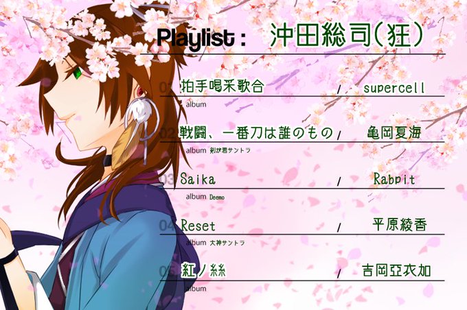 @fate_er_TL まず沖田。あと坂本真綾のSONIC BOOMも入れようかと思った。合うやつあったら教えて欲しい...