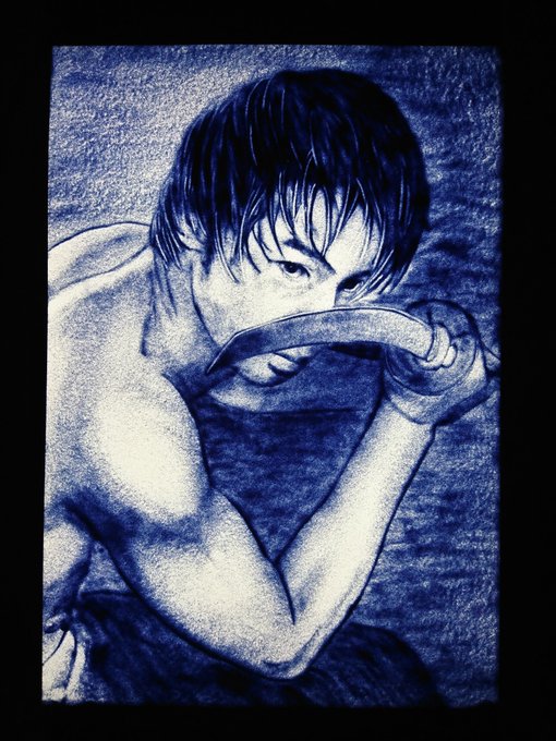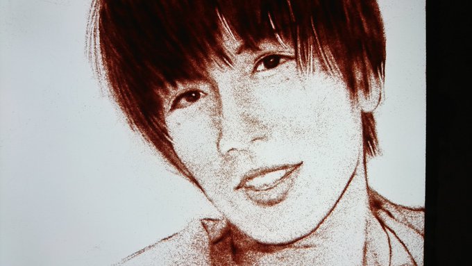 さて今夜は朝まで砂描画やります。最後にガチで描いたの8月の合同展の砂描画ライブの時😅最近は砂物語とか砂似顔絵とか、30分未満のパフォーマンスしかしてなかったです。砂描画が活かせるような映像のお仕事って年に5件も来ないからなぁ。画像は8月の合同展の作品。