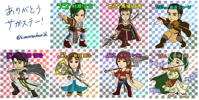 サガステ応援中に別アカで投稿してたサガステ応援絵。砂以外でも似顔絵描きます(笑)サガステ素晴らしすぎて産まれて初めて舞台を地方まで追っかけました。3回観ました。感想は後日ブログで…サガステロス辛いけどDVD発売までにまだ描いてない役者さん描いて待ってます! #サガステ