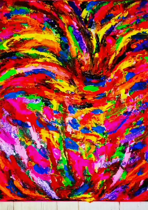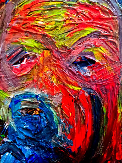 手についた絵の具を、雑巾変わりに、キャンバスにぬぐって出来た顔~💁