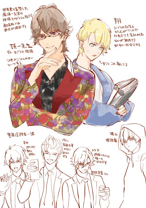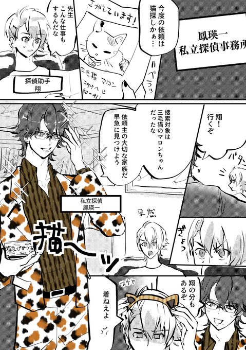 鳳瑛一が演じるド派手な私立探偵&ひたすら振り回される助手の来栖翔くんのドラマが見た〜い❗️という絵です
