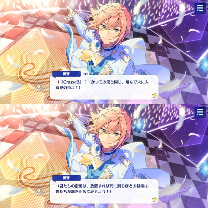 天祥院英智、舞台上ではこんな崇高な事を考えている割に 普段はCrazy:Bに引けを取らないほど 誤解されやすい嫌悪的な表現を繰り返しているんだよね きっと、これが英智なのだろうなぁ………言葉に毒を混ぜている男…………