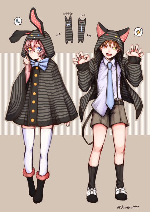 小学校の時実際に作った人形を モデルにキャラ作ったんだけど 描いてて楽しかった☺️ うさぎの方がラック ねこの方がモック (だったはず)