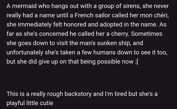 @shareocs I also have this one water woman but she is badly drawn and hard to explain but her name is Mira 🫶 and she likes toying with people who sit on her docks ig