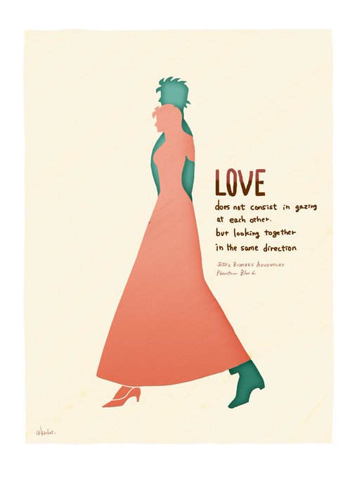 お題『ジョナサン・ジョースター』(+エリナ)#JOJO版深夜の真剣お絵描き60分一本勝負 愛するということは、おたがいに顔を見あうことではなくて、いっしょに同じ方向を見ることだ。(サン=テグジュペリ)