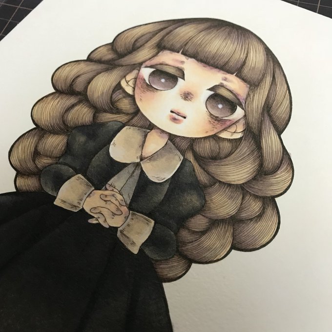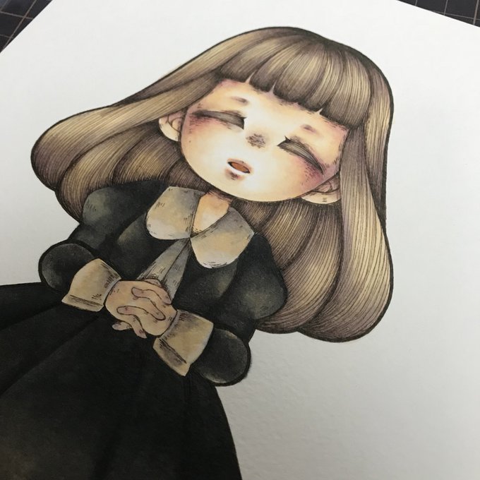 女の子完成完成 髪の毛の色がお気に入り 使用コピック:V95・E42・YR31