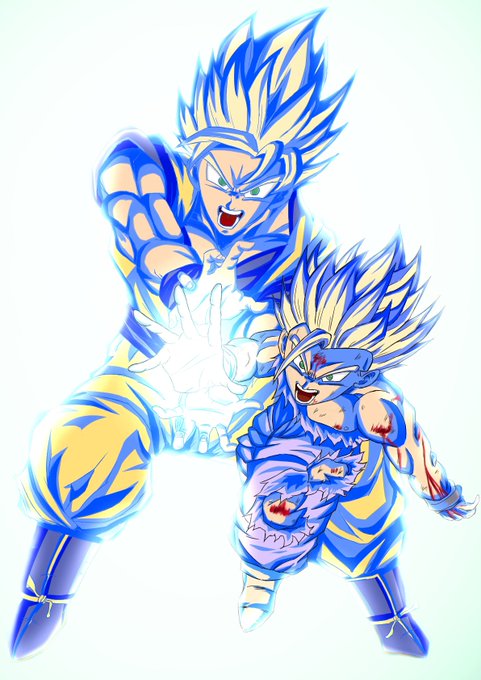 完成しました(*´∀`*)尊敬する神絵師さんとの合作です!まさかコラボさせて頂けるとは思ってなかったのですごく嬉しかったです!ゴジータの塗り方がんばって寄せてみました🤗 ベジット担当→画家ロットさん