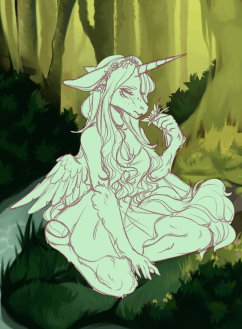 finished big painting of a very gloomy unicorn 🌿~part of a trade with someone on TH~