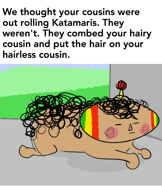 Based on a facebook post I saw ... The cousins brushed Colombo and put the hair on Lalala! #katamaridamacy