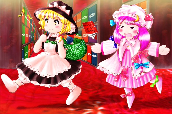 今日の過去絵は初めて描いたSP。八雲紫と結界「光と闇の網目」、霧雨魔理沙とパチュリー・ノーレッジ「もってかないでー」、フランドール・スカーレットと禁忌「カゴメカゴメ」です。みんな幼いですねw。