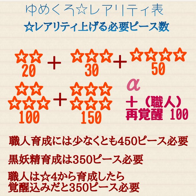 自分用にピースの必要な数をメモしたの作った。