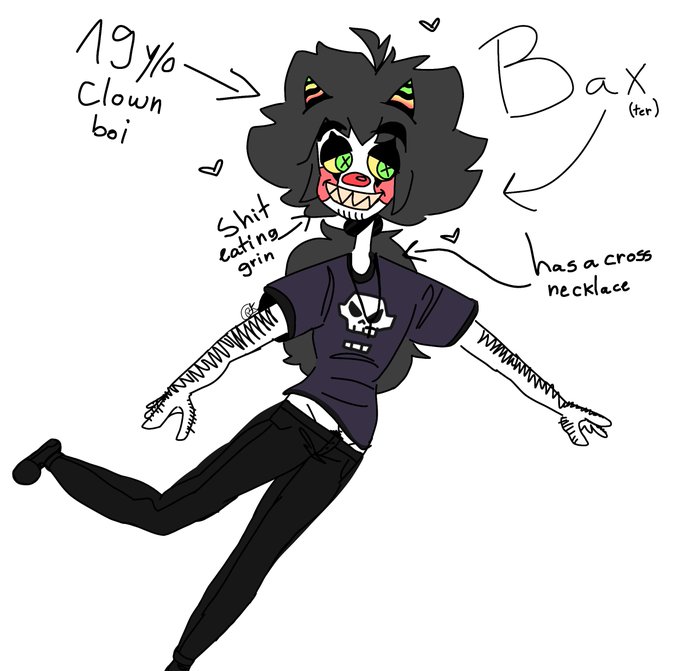 @lyferine Ofc!! Here's my clown boi, Bax!!