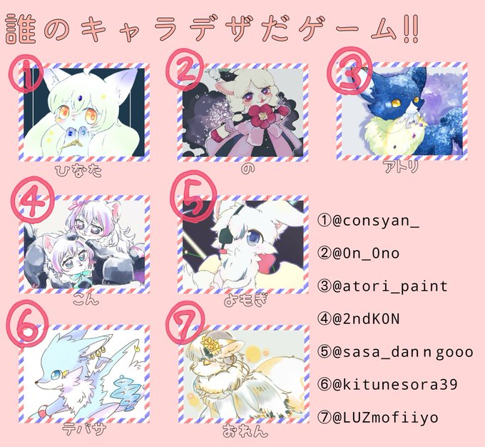 #誰のキャラデザだゲーム テーマは「星座」 しろちゃ(@ consyan_ )の企画で⑥番の子担当させていただきました! 私のデザインした子はどの子かリプにアンケートつなげるので回答よろしくお願いします✨