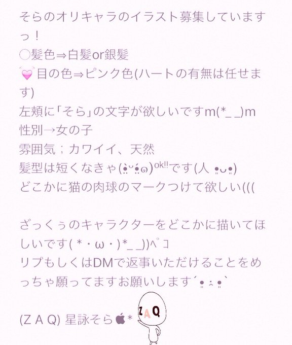 そらのオリキャラを描いてくださる方を募集しています( ❁ ´͈ ᵕ `͈ )