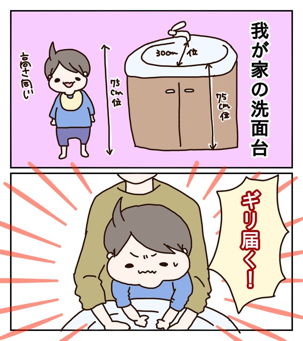 おはようございます☀ コロナの関係もあって頻繁に手を洗わせたいけど重い&やりにくいので スリコで踏み台買ってきた話🤔 蛇口までは届かないけど 手前までは届くので結果的には買って良かった👏 楽になったよー!😂 サイズ感がピンポイントだけど 誰かの参考になればいいなー🙄 #育児漫画 #1歳