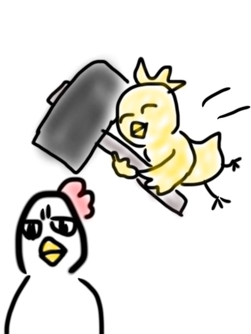本人に1〜3枚目の絵を見せたら自分で4枚目を仕上げてきたんだけど。 にわとりを返討ちにするひよこを描くのがとても楽しい…ストレスでも溜まってるのかな🥳🥳