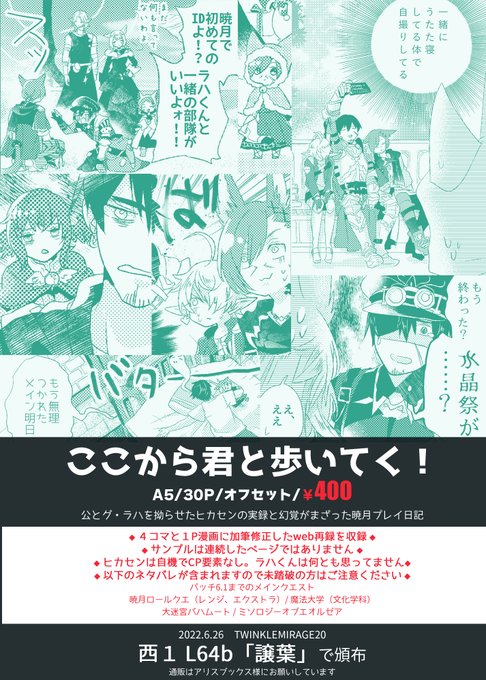 TM20でラハくん拗らせ光戦の暁月プレイ日記本が出ます。サンプルは6.0メインまでですが、本文には6.1・サブクエの内容も含みますので画像4枚目でご確認下さい。通販はアリスブックス様にて21日19:00より予約開始。既刊含めたお品書きはまた改めて。宜しくお願い致します!