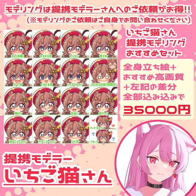 また、提携モデラーのいちご猫さん @15neko2d にモデリング依頼をして頂くのがお得になります!