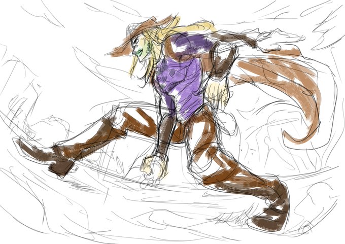 3Dモデルを作り直すと決めてから描いてみた原画 画風もぜんぜん違うしポーズも左右間違えるしほとんど参考になっていないという …足長くしなきゃ
