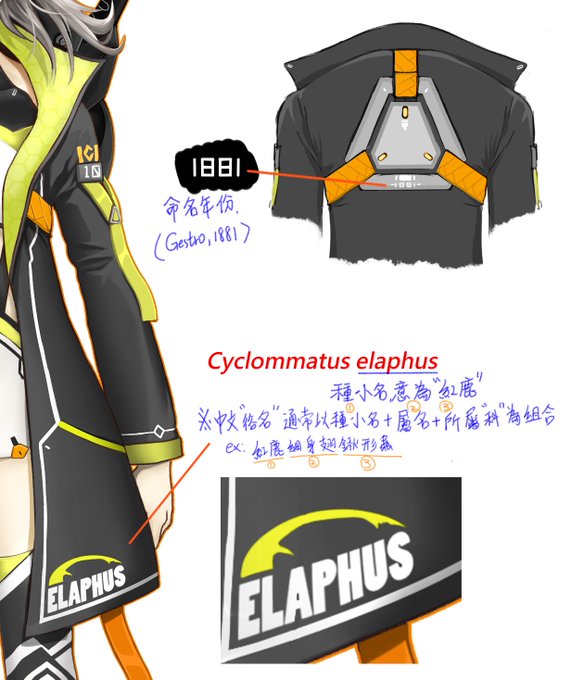補足情報 虫武少女-Cyclommatus elaphus Cyclommatus elaphus (Gestro,1881) エラフスホソアカクワガタ #昆蟲擬人 #オリジナル #兵裝 #虫