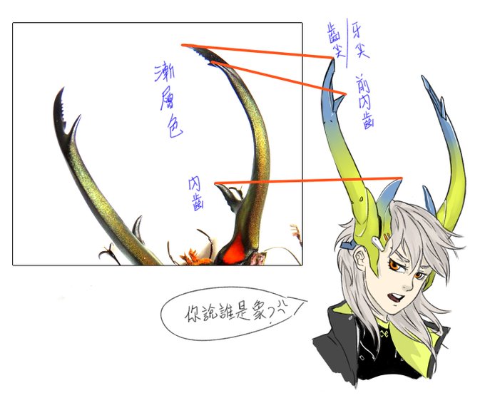 虫武少女-Cyclommatus elaphus Cyclommatus elaphus (Gestro,1881) エラフスホソアカクワガタ #昆蟲擬人 #オリジナル #兵裝 #虫