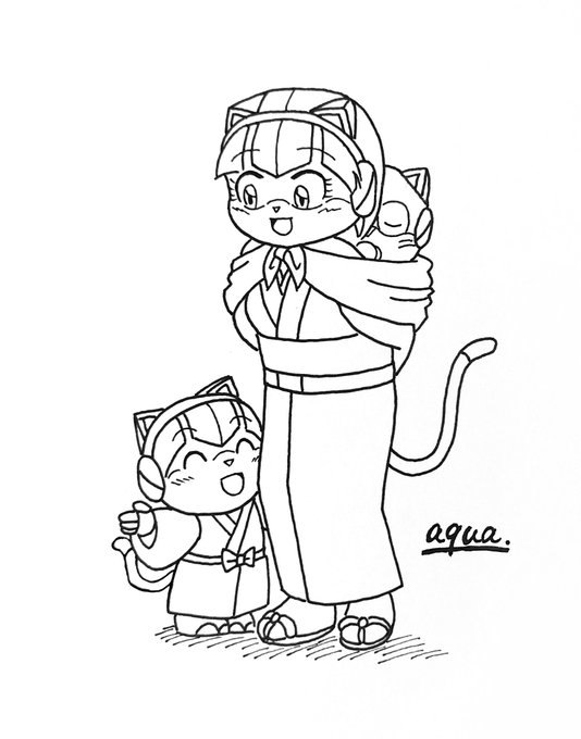 親子3人(ピザ猫/白赤) ※子供捏造、出産要素あり