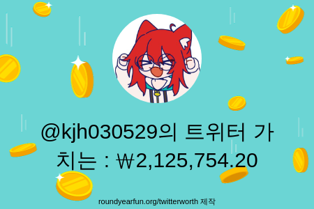 내 트위터 가치는 : ₩2,125,754.20 입니다 https://t.co/ZfcW4UyZYr 당신의 정보를 확인하세요 ⠀