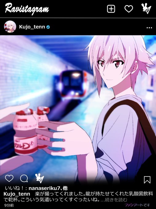 和泉三月くんのラビスタ🐇✨一織くんと一緒の楽屋前でのオフショットですね🧡💙