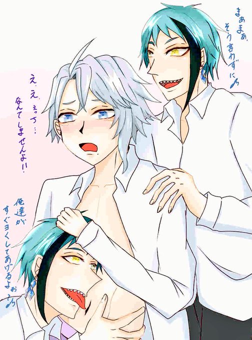 いい感じの雰囲気の🐙と🐬を🦈が邪魔する話w そして、慌てて誤魔化そうとする🐙(誤魔化せてはない)w 🐙「ち、違うんです…これは…!」 🦈「なんで俺のいないときにおもしれーことすんのー!!(拗)」 🐬「おやおや、困りましたね(困ってない)」 #オクタヴィネル #イドアズ #twstファンアート