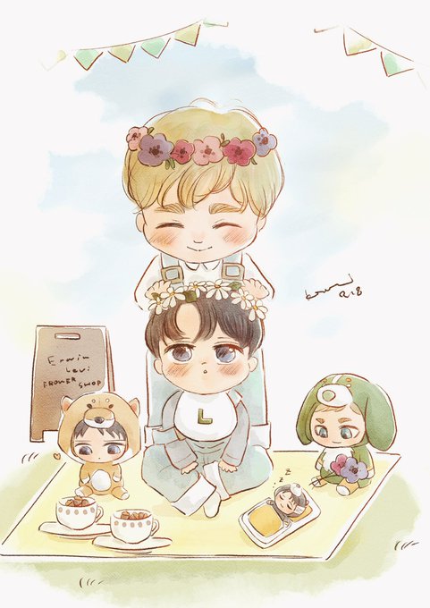 子えるりをマスキングテープにしたくて試行錯誤ちう。まだ色味とかりばいのポーズ悩んでる😂 あと子えるびんと子えるりverも描きたい。
