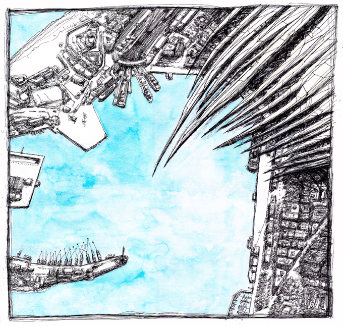 Inking this thing (VI): Foregrounding. | New piece for @Arquine: 'The Limits of the City' #cartoons & #architecture #klaussketches #makecomics