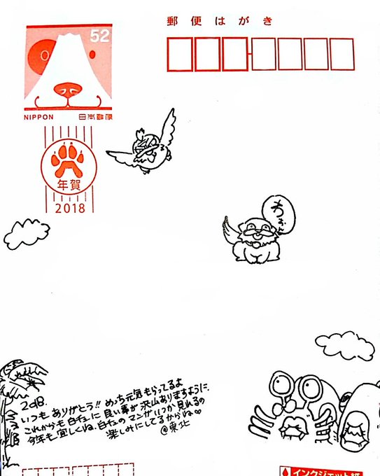 年賀状せっかく紹介していただいたので、私も紹介しちゃおう!!!!酔いさん(@rocknganma )からの年賀状好きな子たちいっぱいで素敵…!!!🙏😭✨宛名面も素敵!!!!!!(住所と本名は見えなくしました!)酔いさんにもいっぱい素敵な事がありますように!!!!🙏✨✨漫画頑張ります!!!!!!