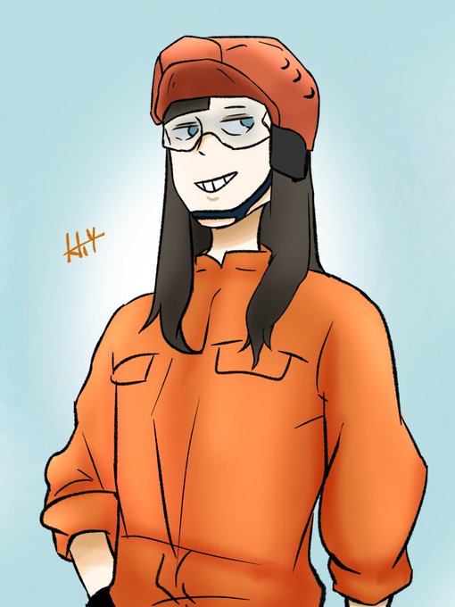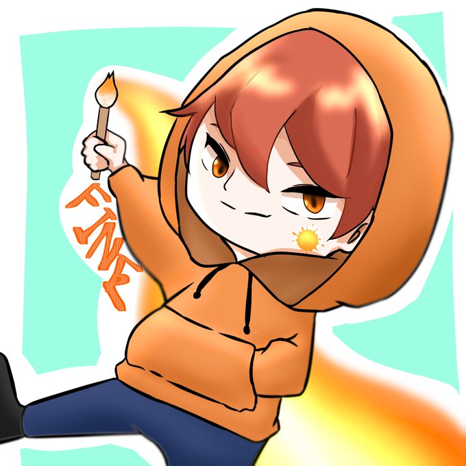 FINEさん!(@BqYVnesz8EOrrq7 ) オレンジ色を使った人間ということで…! ふんだんにオレンジ使いました🍊🥰 #イラスト