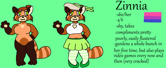 friend gave me the idea for a red panda oc today so here's Zinnia! i think she's pretty rad and also cute :)