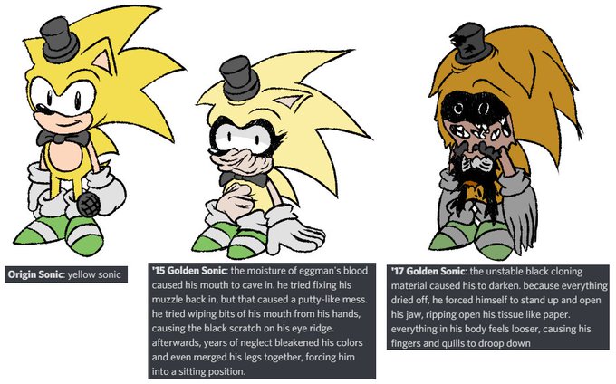 eh you know what, Kluns!Origin Sonic, Kluns!'15 Golden Sonic, Kluns!'17 Golden Sonic, Kluns!'27 Golden Sonic, Kluns!Nightmare Golden Sonic, and Kluns!Shadow Sonic